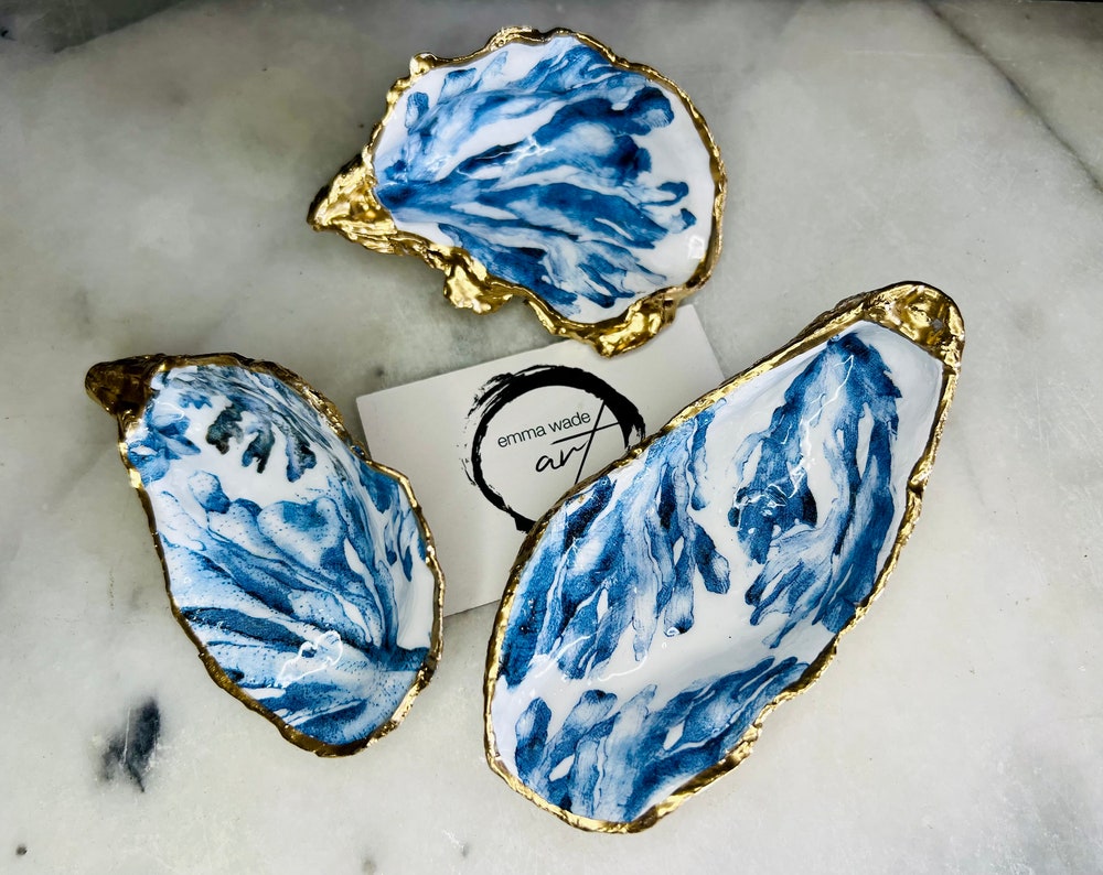 Blue Dots Oyster Shell Trinket Dish: Gold Gilded Sustainable Decor