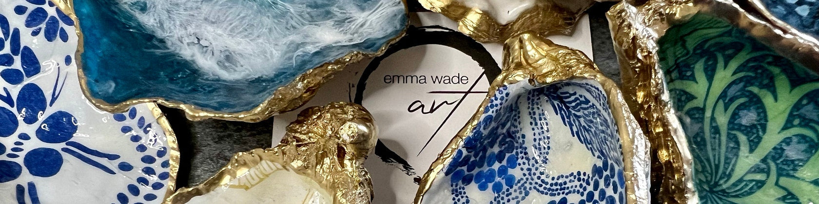 Oyster Shell Salt and Pepper Pinch Pots: Gold Leaf, Blue Floral - Dorset Shells